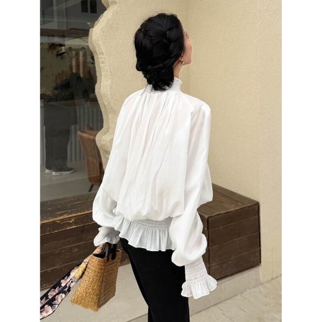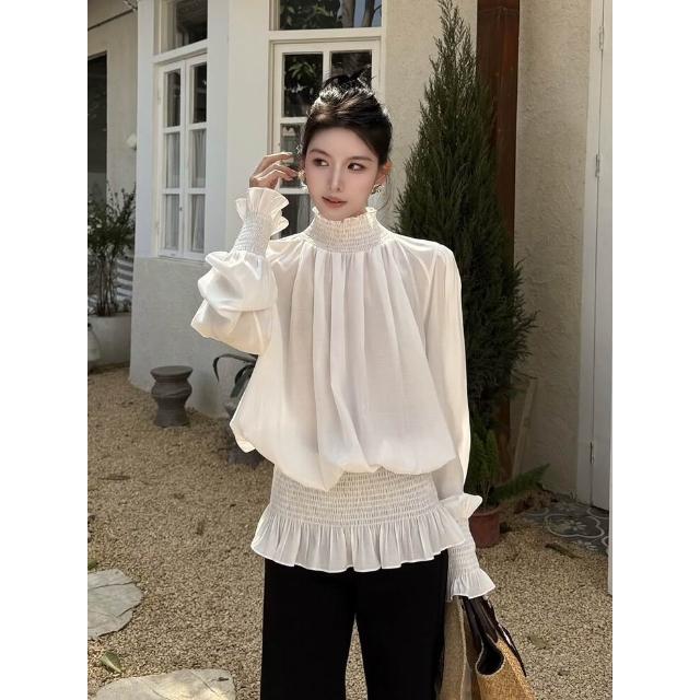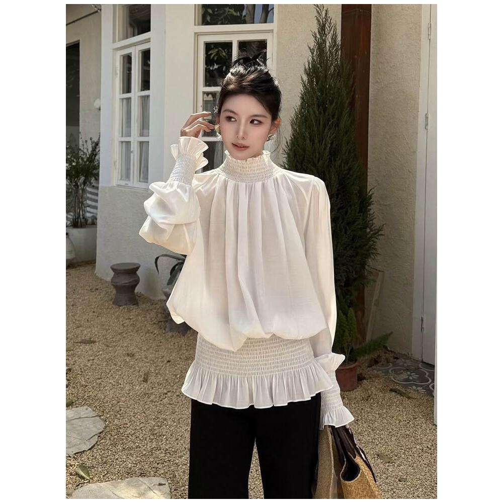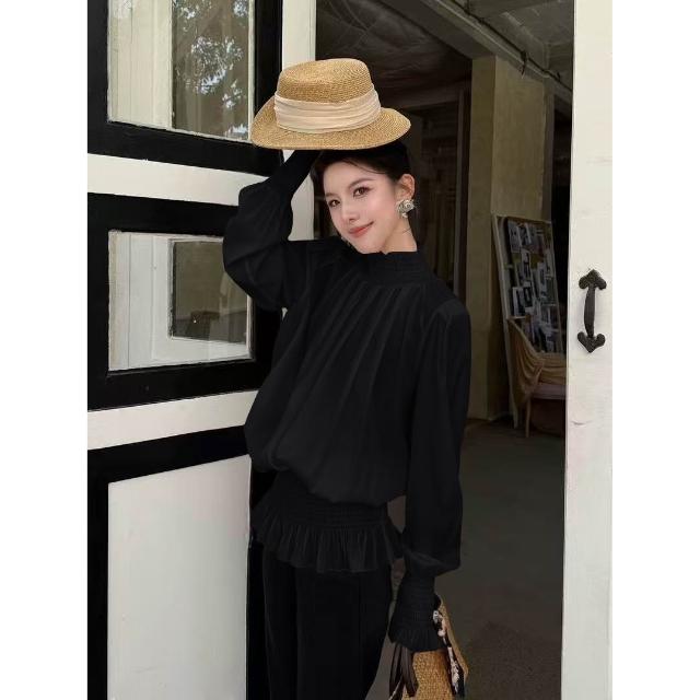 春秋上衣 長袖 T恤 淑女氣質 韓國Chic打榄半高領套頭天絲襯衣 長袖寬松韓版襯衫 百信百貨