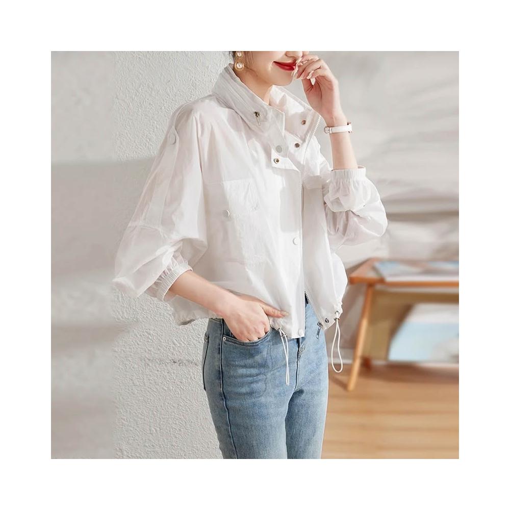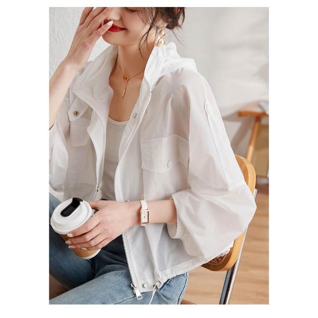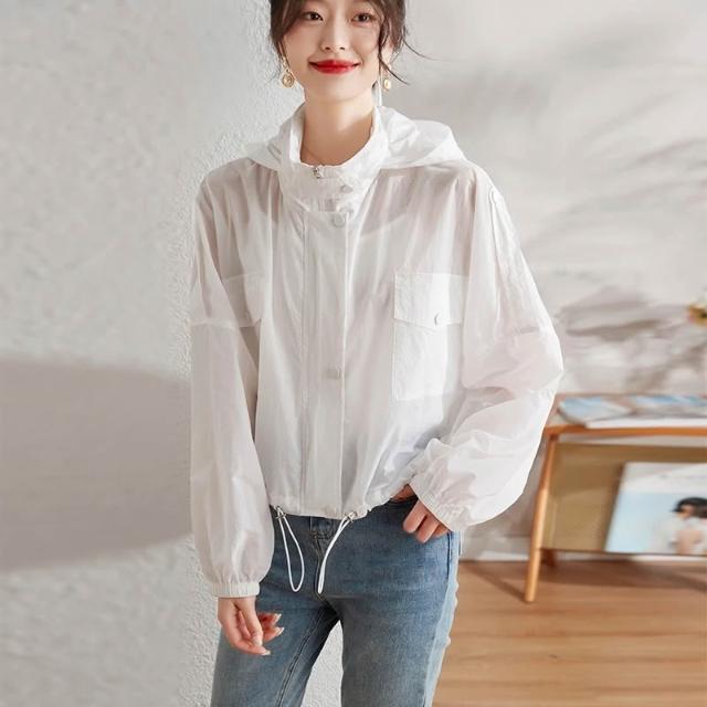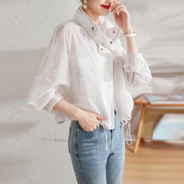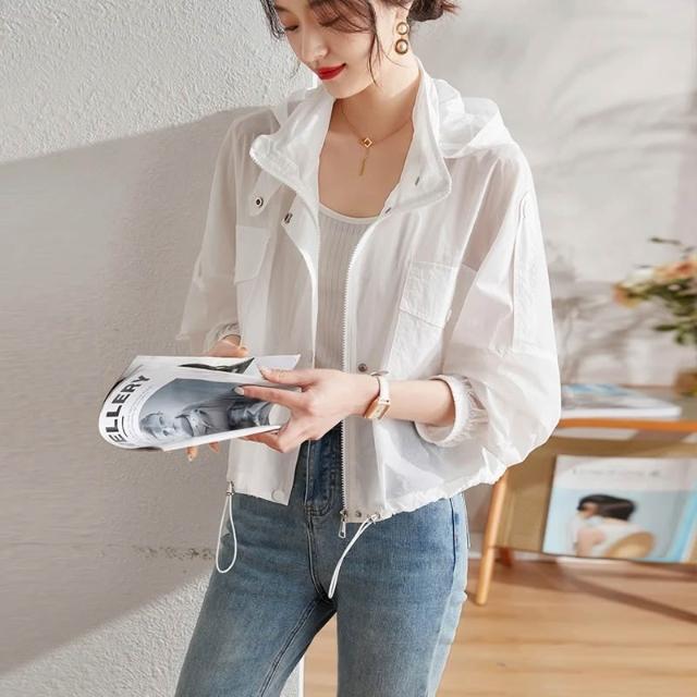 春夏防曬衣 薄款外套 上衣 防曬衣女2026短款新款防紫外線抽繩連帽夏季休閑寬松長袖透氣外套 百信百貨