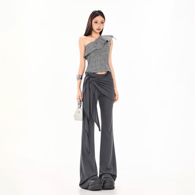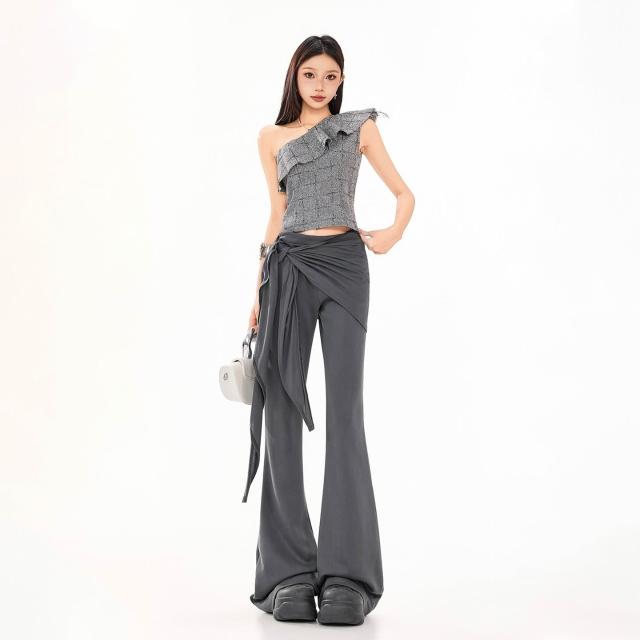 新款屁帘褲 遮肉顯瘦 日常百搭 26ss | 2026美式休閑新款低腰休閑微喇瑜伽褲假兩件修身顯瘦春夏 百信百貨