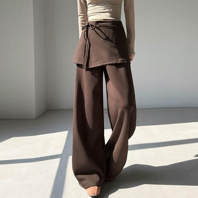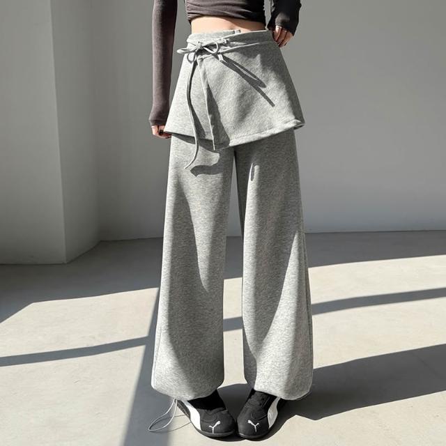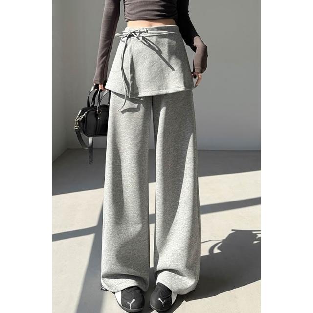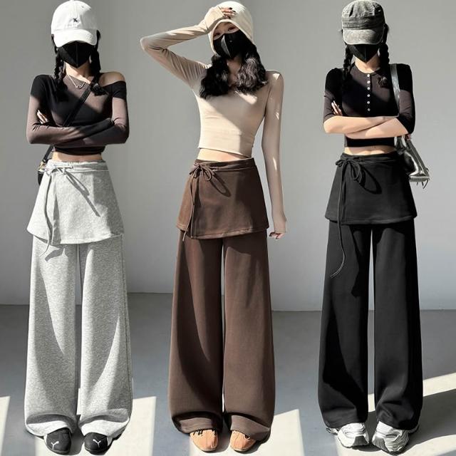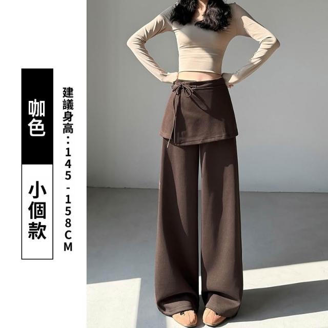 新款屁帘褲 遮肉顯瘦 日常百搭 實拍韓系新款屁簾衛褲女春秋假兩件裙褲直筒褲闊腿褲兩穿休閑長褲 百信百貨