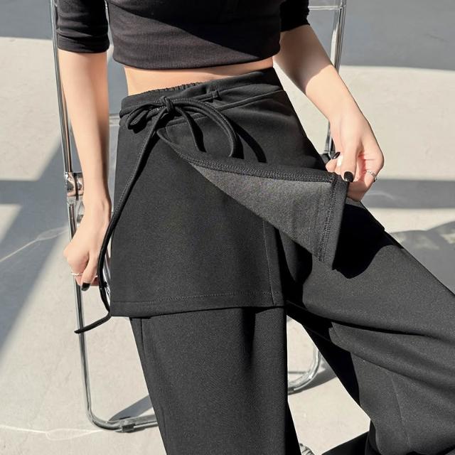新款屁帘褲 遮肉顯瘦 日常百搭 實拍韓系新款屁簾衛褲女春秋假兩件裙褲直筒褲闊腿褲兩穿休閑長褲 百信百貨
