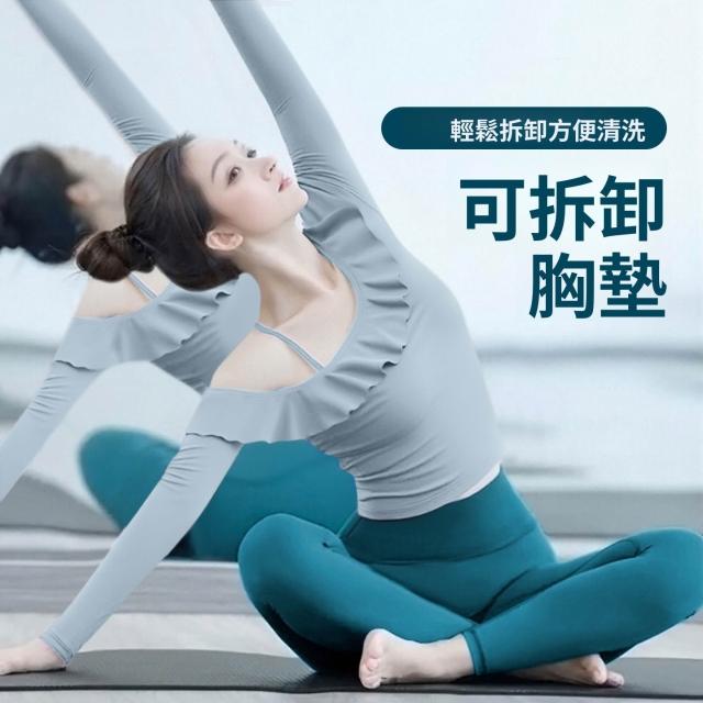 新款套裝 運動套裝 瑜伽服 雙秀絕美瑜伽服2025超火高級露肩普拉提上衣健身訓練套裝長袖女 百信百貨