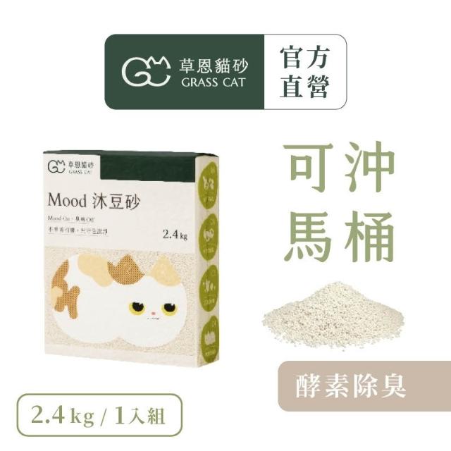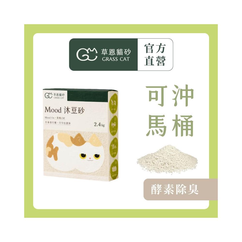 GRASS CAT 草恩Mood 沐豆砂 2.4kg*1入組(豆腐砂/木薯砂/米粒型/凝結型貓砂/無香除臭)