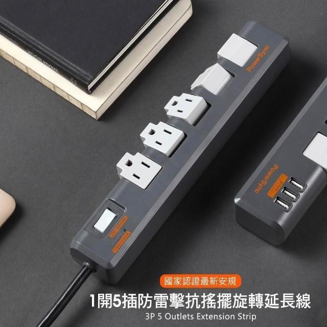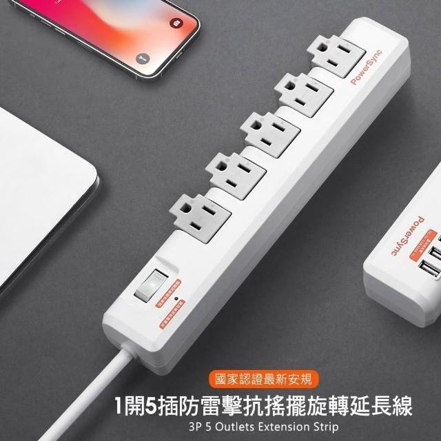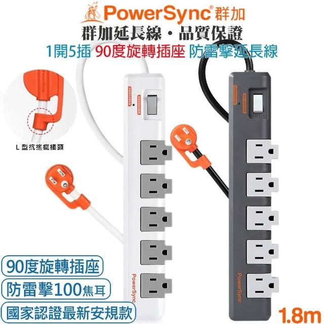 PowerSync 群加 3P1開5插旋轉防火插座防雷擊電源延長線1.8米TR5W8018灰 TR5W9018白