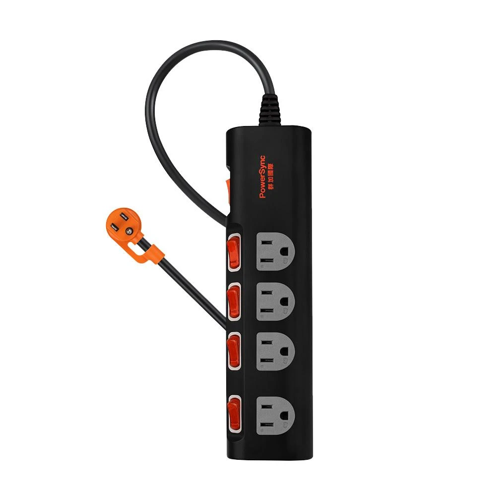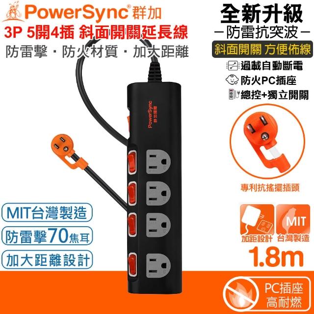 (MIT台灣製造)Power Sync 群 加 5開4插斜面開關防雷擊抗搖擺延長線1.8米TS4B0018 加大間距插座