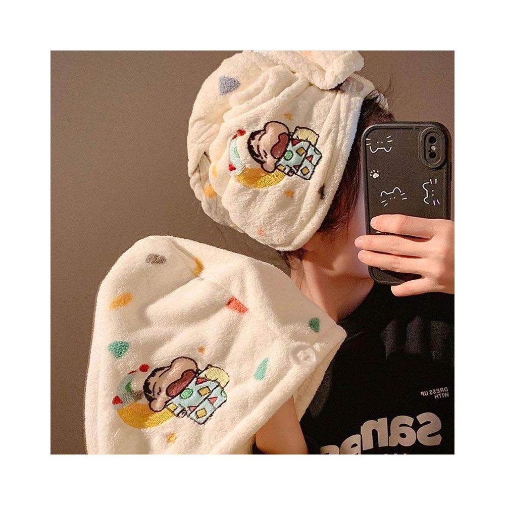 豆豆優選小新干發帽吸水速幹兩件套幹發毛巾加絨加厚浴帽