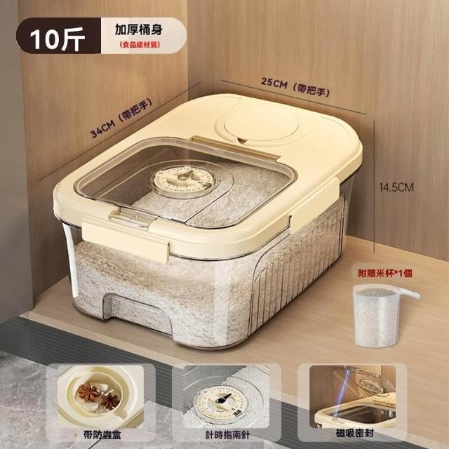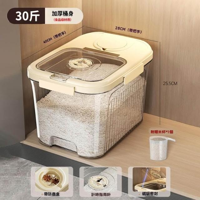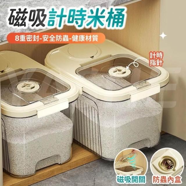 豆豆優選 磁吸計時米桶 密封米桶 儲米罐 大容量米桶 家用防蟲防潮米桶
