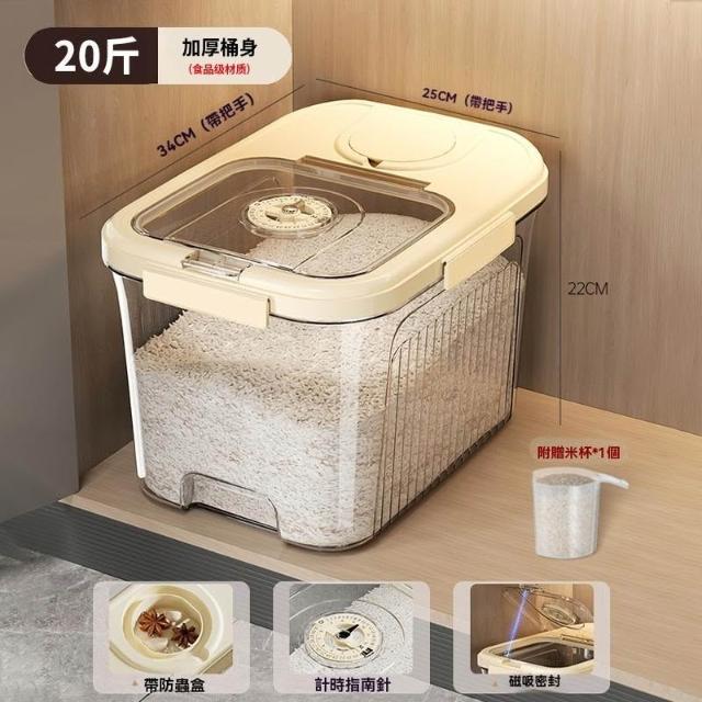 豆豆優選 磁吸計時米桶 密封米桶 儲米罐 大容量米桶 家用防蟲防潮米桶