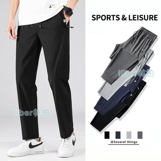 林柏 冰絲 速乾 男 付拉鍊口袋 防盜 健身 運動長褲
