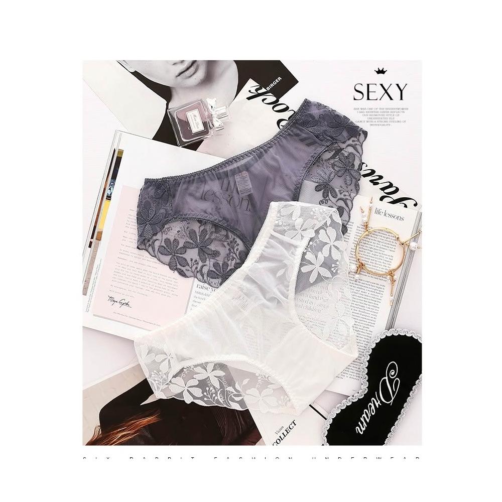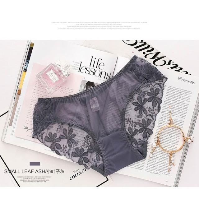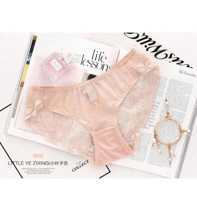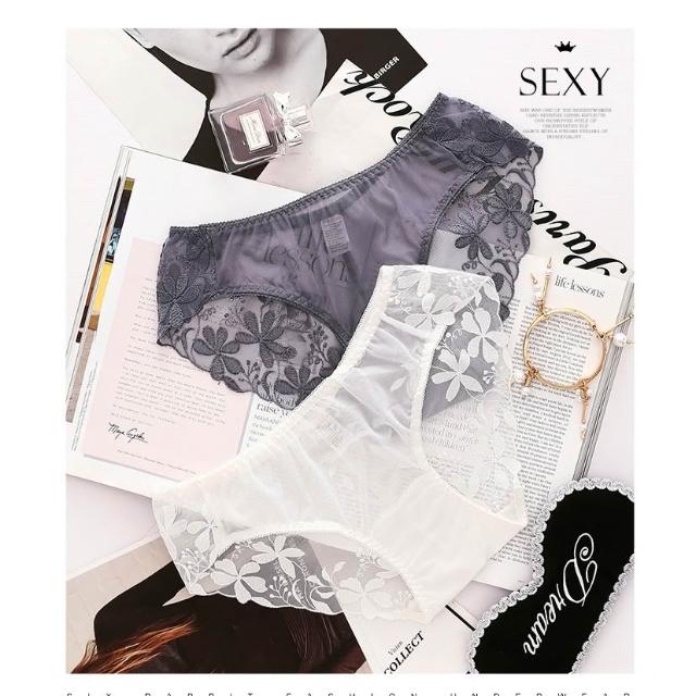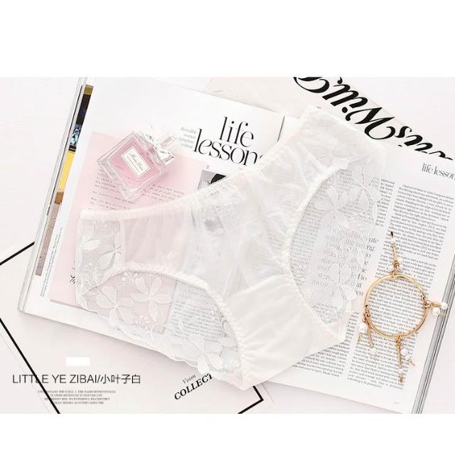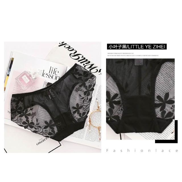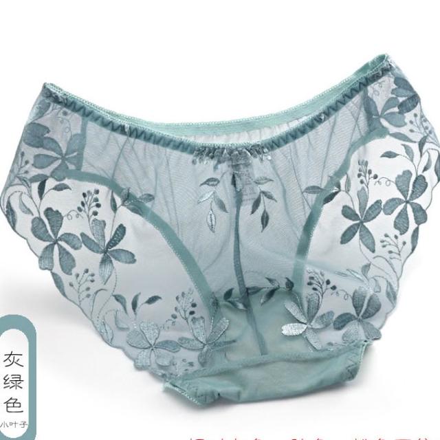 林柏 日系 透明 刺繡 蕾絲 性感內褲 冰絲 網紗 透明 女士 三角內褲