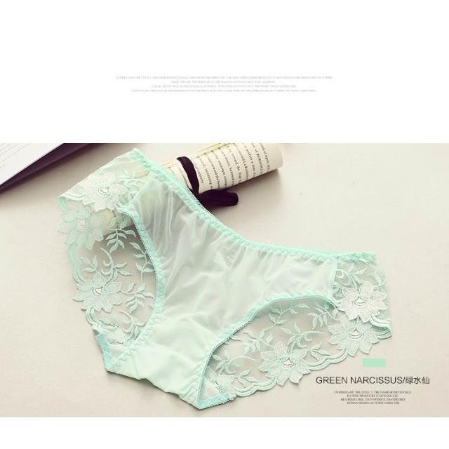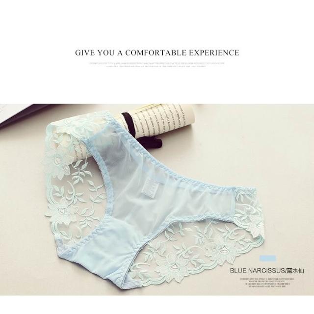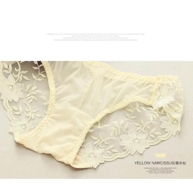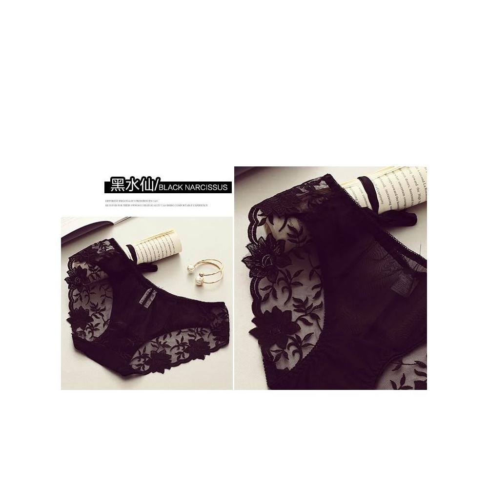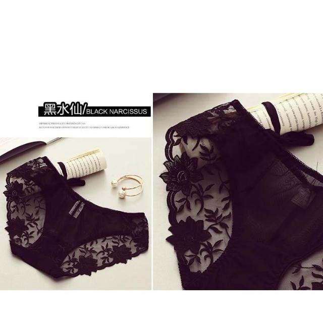 日系 冰絲 性感 網紗 刺繡 蕾絲 透明 女三角內褲 女內褲