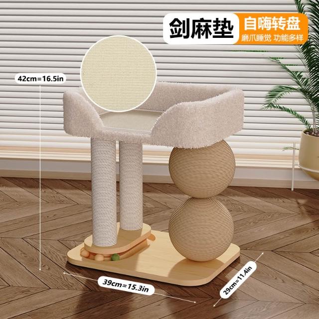 貓爬架 貓咪抓架 劍麻耐磨不掉屑 貓咪玩具 小型劍麻貓抓板 貓窩 貓跳台 一體實木 不占地 通天柱