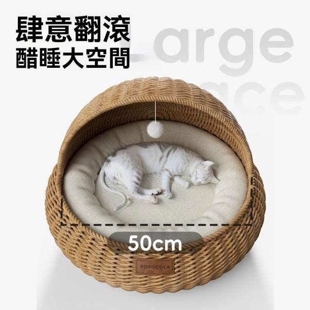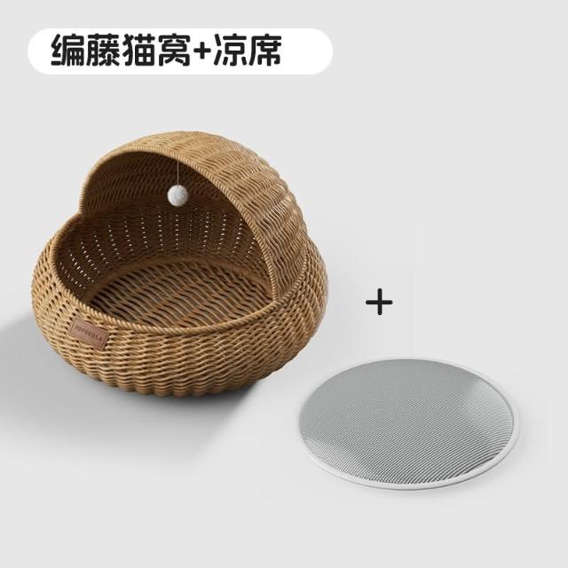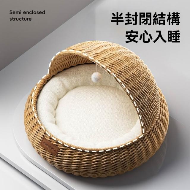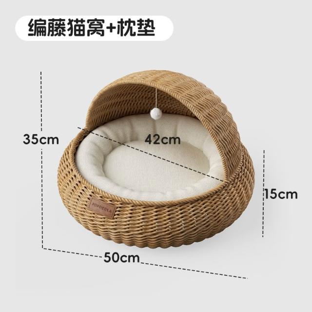 貓窩 寵物窩 藤编猫窝 藤編寵物窩 手工編織貓窩 半封閉式寵物窩 可水洗 四季通用 夏季竹編編織筐