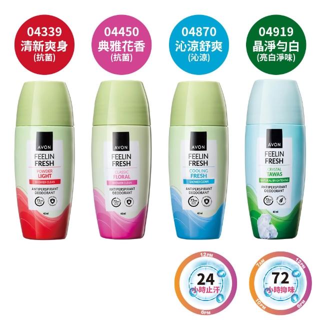 AVON 雅芳制汗體香劑40ml|持久抑味 滾珠瓶 pH值平衡|清新爽身 典雅花香 沁涼舒爽 晶淨勻白