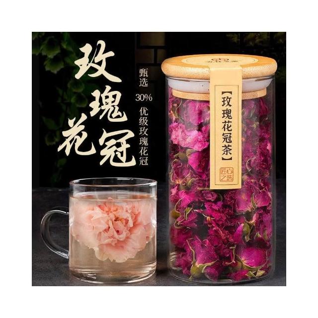 心心相印 重瓣玫瑰花幹泡茶平陰墨紅玫瑰花冠幹泡茶食用玫瑰花瓣茶組閤