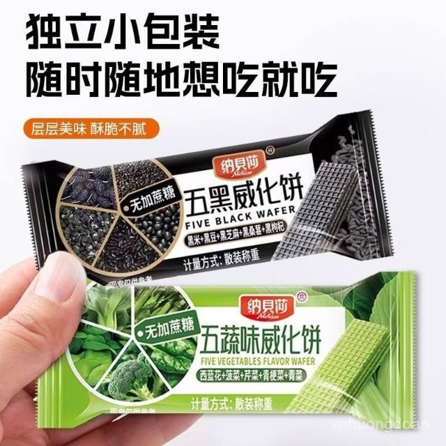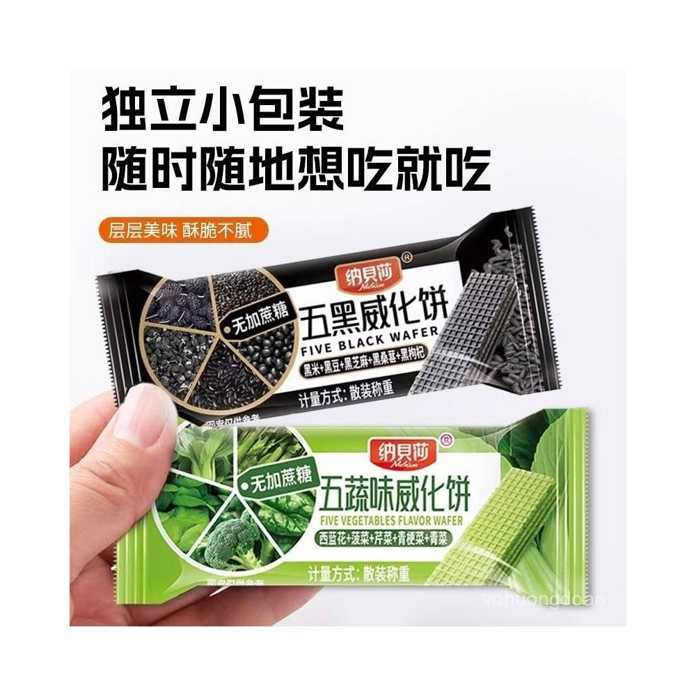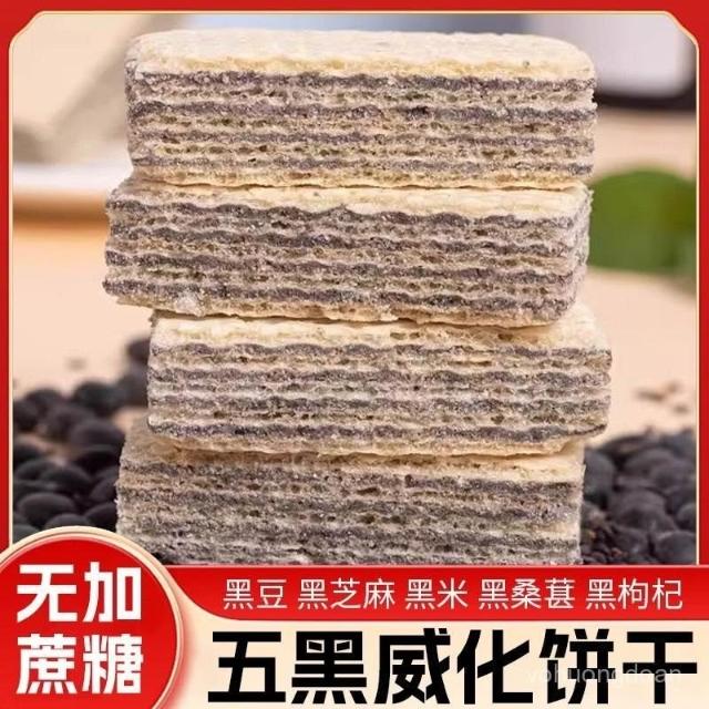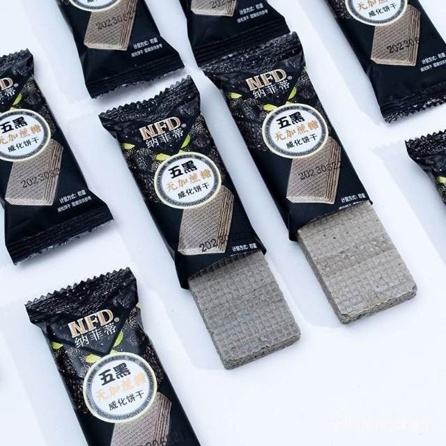 心心相印 無蔗糖五黑威化餅幹黑桑葚黑枸杞黑豆黑芝麻粗糧低糖零食小包裝