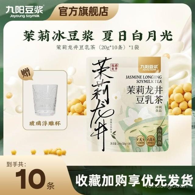 心心相印 九陽豆漿茉莉龍井豆乳茶10條0糖添加下午茶可冷泡奶茶健康替代
