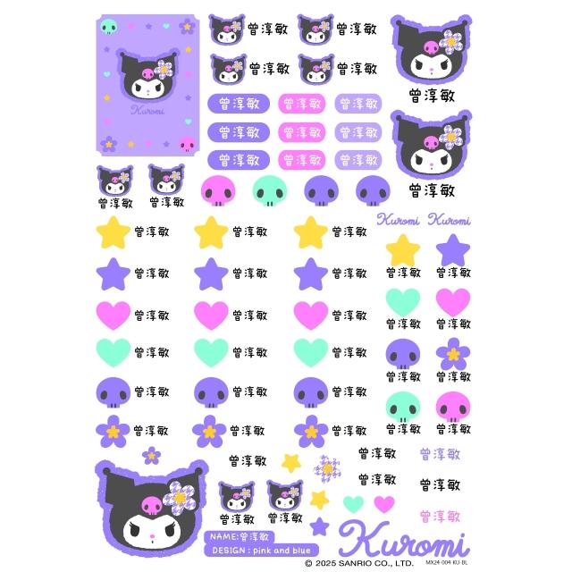 Pink and Blue 三麗鷗聯名防水水晶貼紙 酷洛米水晶姓名貼(A5尺寸/立體設計/正版授權)