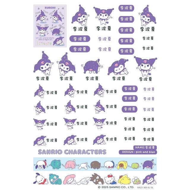Pink and Blue 三麗鷗聯名防水水晶貼紙 酷洛米水晶姓名貼(A5尺寸/立體設計/正版授權)
