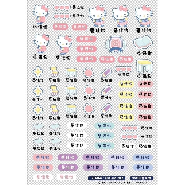 Pink and Blue 三麗鷗聯名防水水晶貼紙 HelloKitty水晶姓名貼(A5尺寸/立體設計/正版授權)