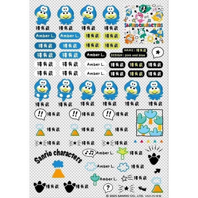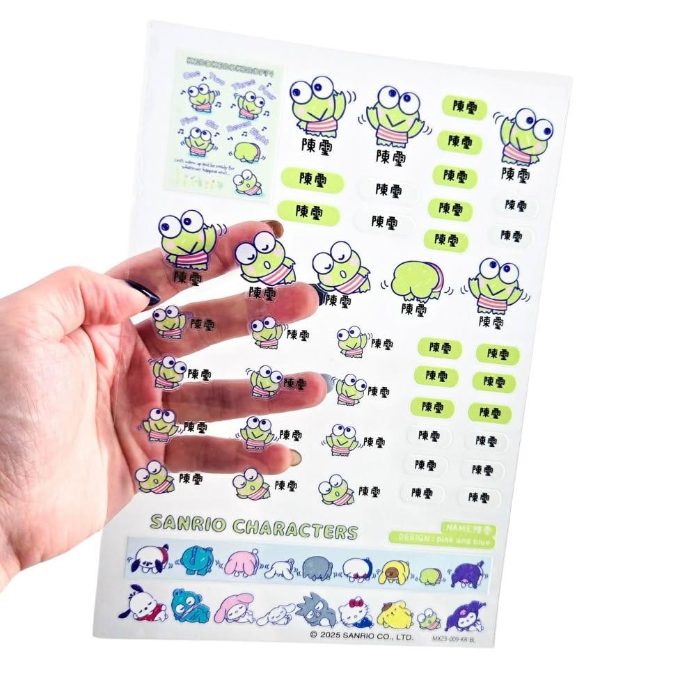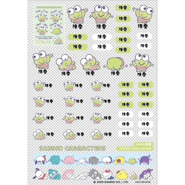Pink and Blue 三麗鷗聯名防水水晶貼紙 大眼蛙水晶姓名貼(A5尺寸/立體設計/正版授權)