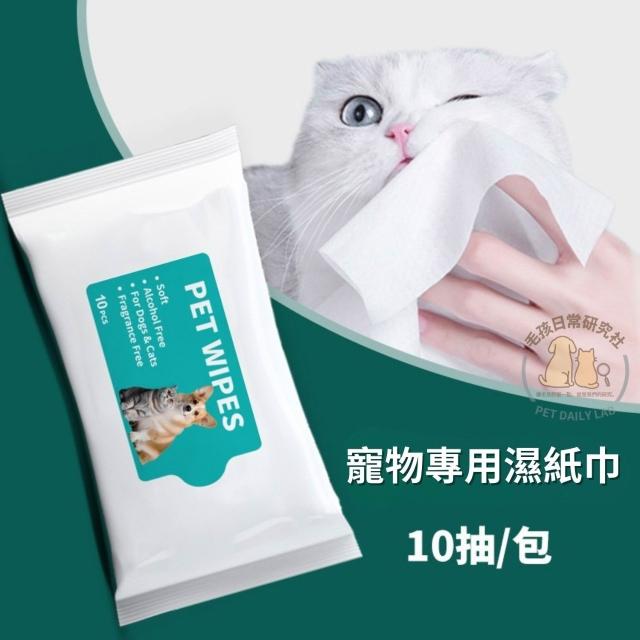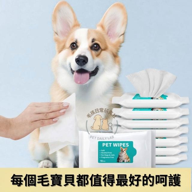 【毛孩日常研究社】寵物清潔濕巾10抽隨身包 犬貓通用 眼口鼻耳可用 無酒精 外出攜帶日常清潔濕紙巾