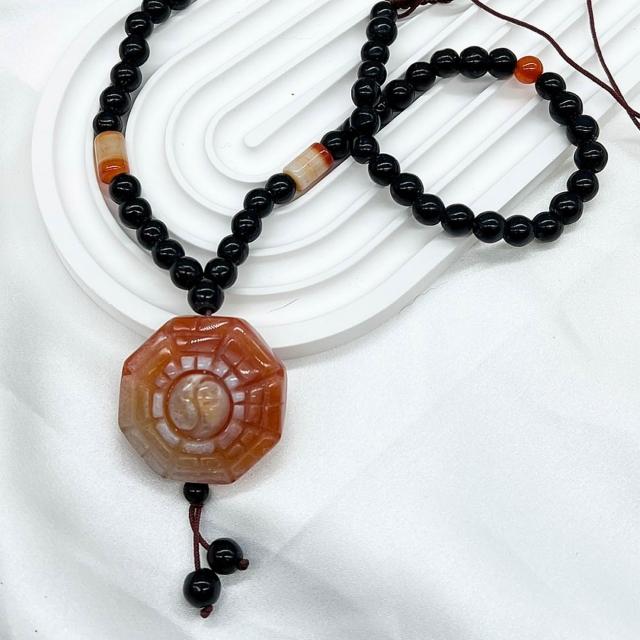 日月太極八卦墜項鍊 | 玉石吊墜 項鍊 玉質雕刻 收藏精品 精品 藝術飾品 送禮收藏 護身 開運 禮贈首選 玉石