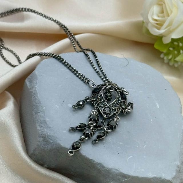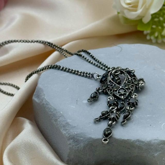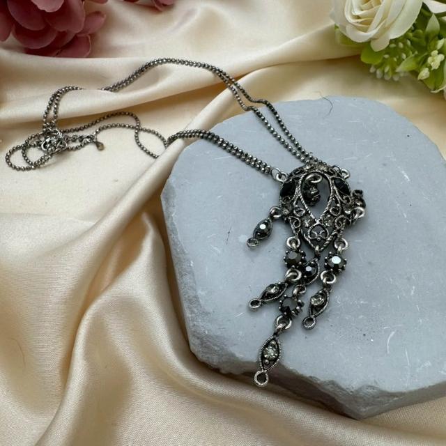 暗黑系黑鑽流蘇項鍊|復古鏤空雕花長鍊 穿搭配件 女生項鍊 冷調飾品 復古風 造型項鍊 金屬項鍊 禮物推薦 禮物佳品
