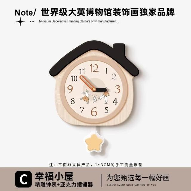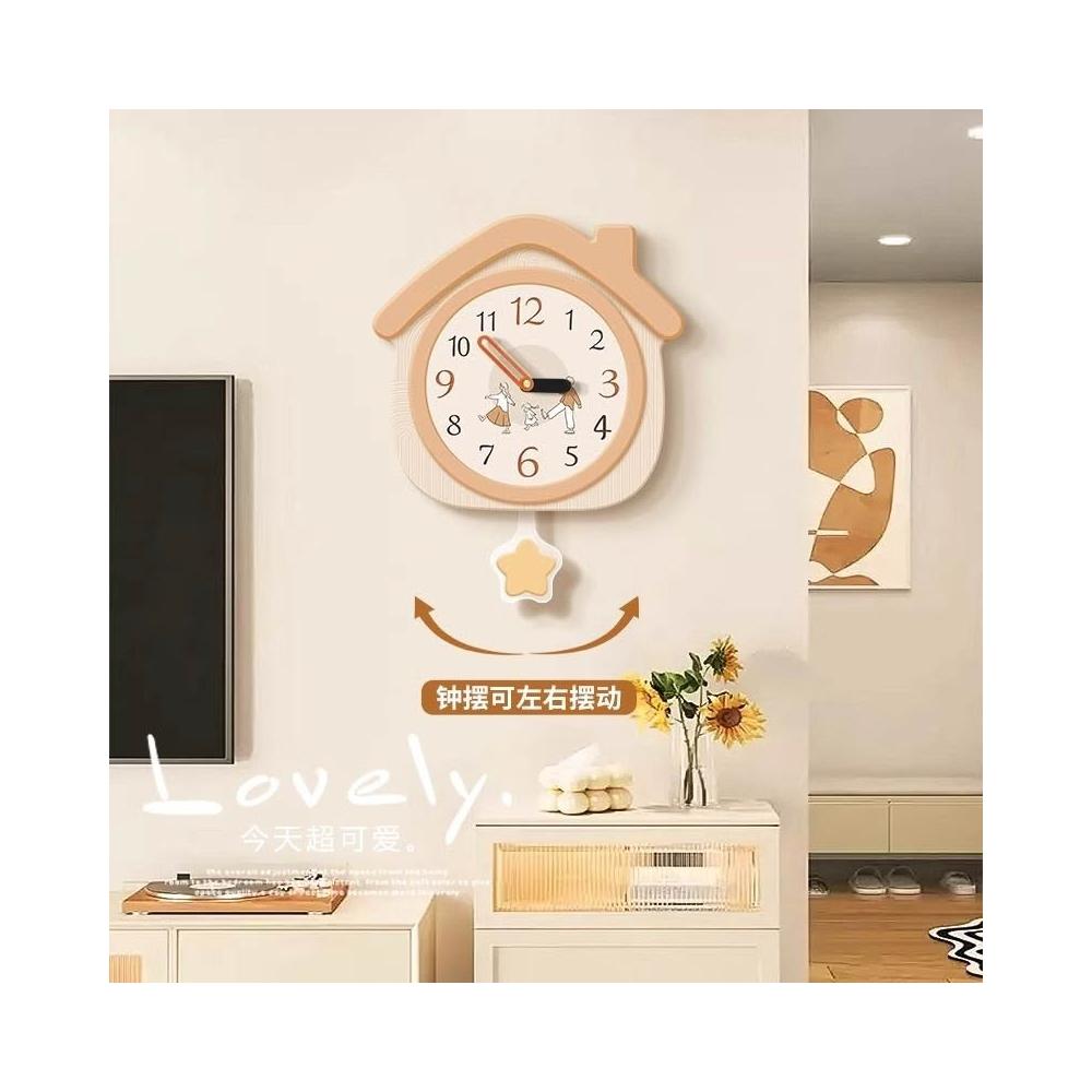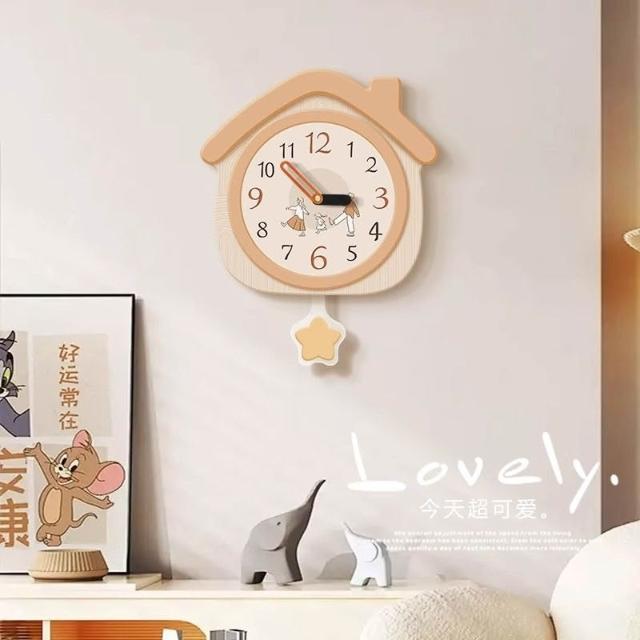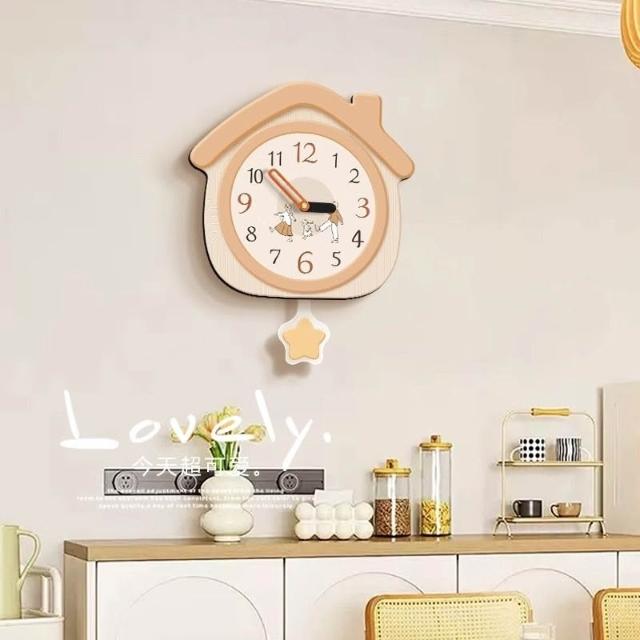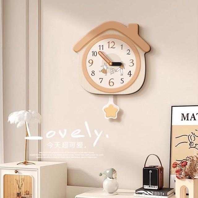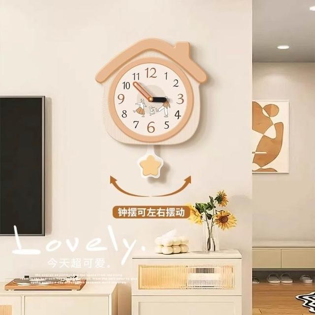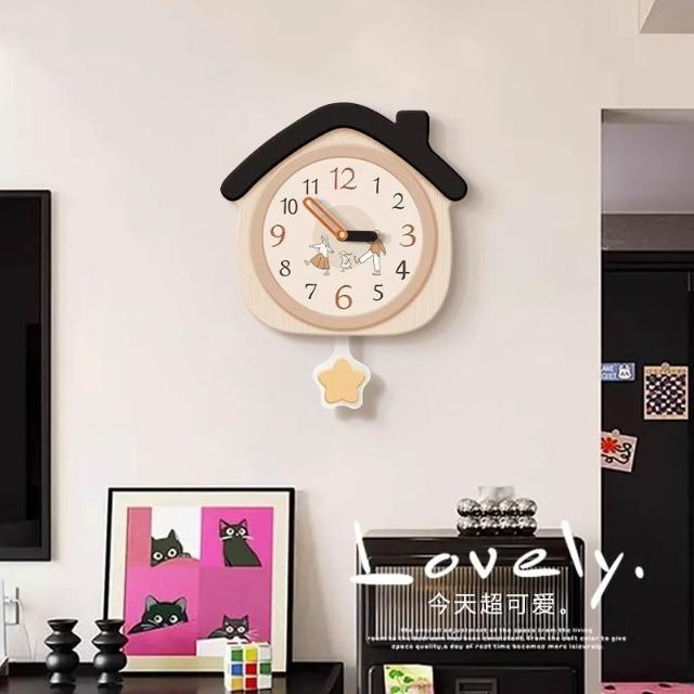 奶油風客廳創意掛鐘小房子創意藝術時鐘掛牆餐廳臥室鐘錶家用掛表