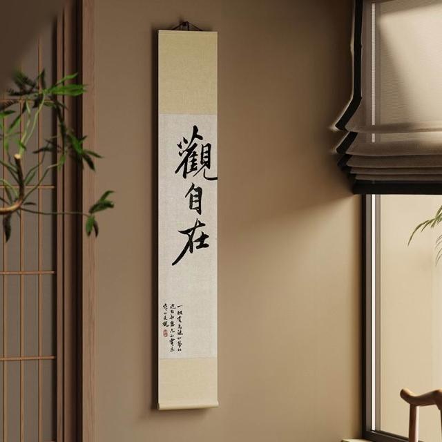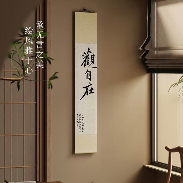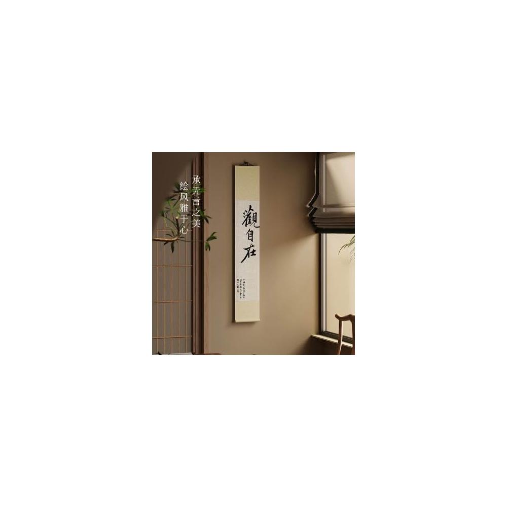 新中式觀自在書法卷軸茶室掛畫書法字畫掛牆竹簾書房背景牆裝飾畫