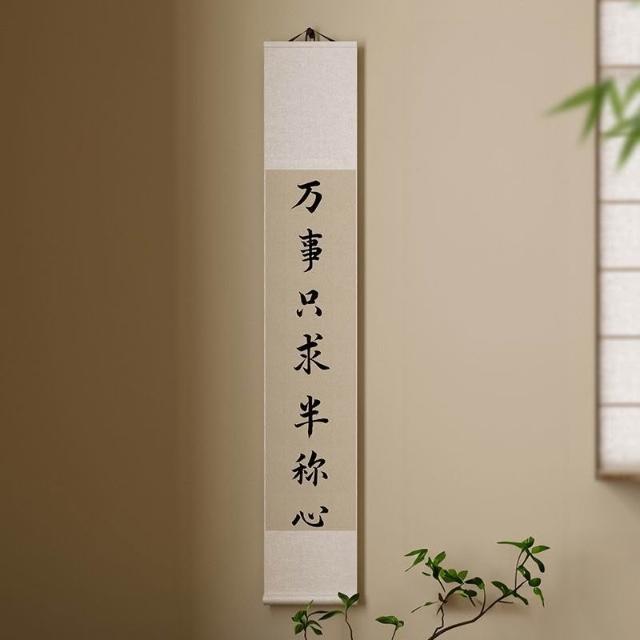 新中式觀自在書法卷軸茶室掛畫書法字畫掛牆竹簾書房背景牆裝飾畫