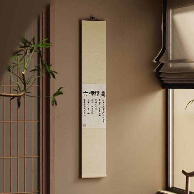 新中式觀自在書法卷軸茶室掛畫書法字畫掛牆竹簾書房背景牆裝飾畫