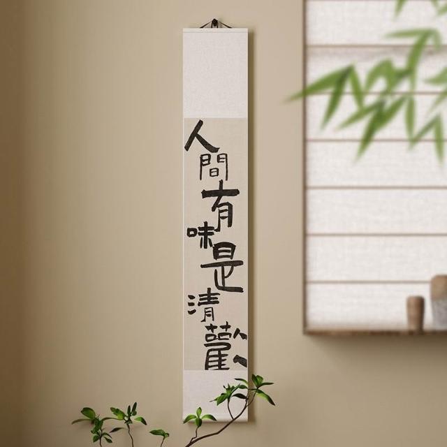 新中式觀自在書法卷軸茶室掛畫書法字畫掛牆竹簾書房背景牆裝飾畫