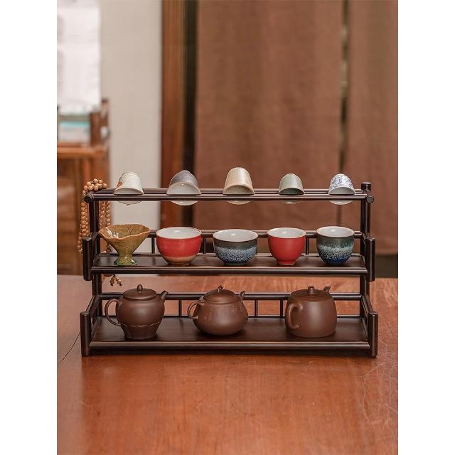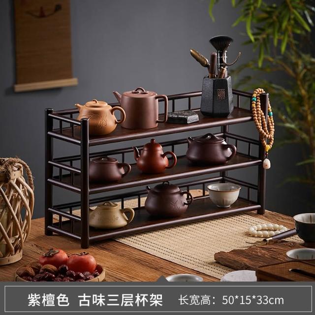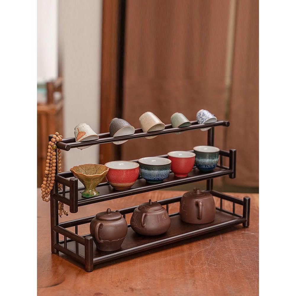 茶杯架子茶具置物架實木中式小博古架桌面茶壺擺放架茶桌收納架