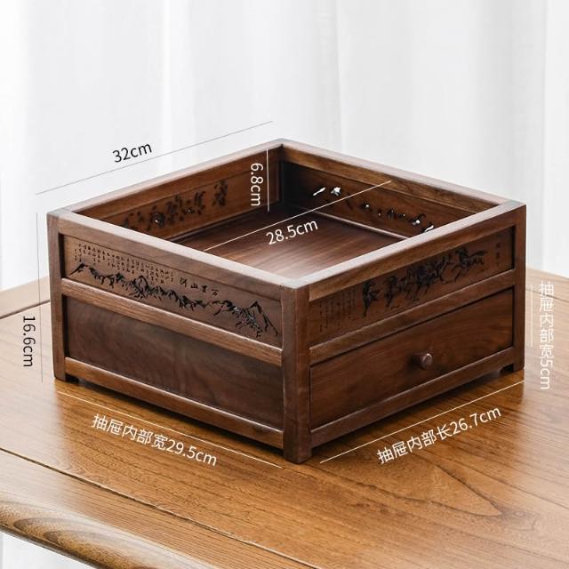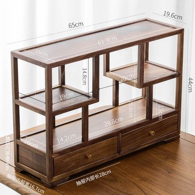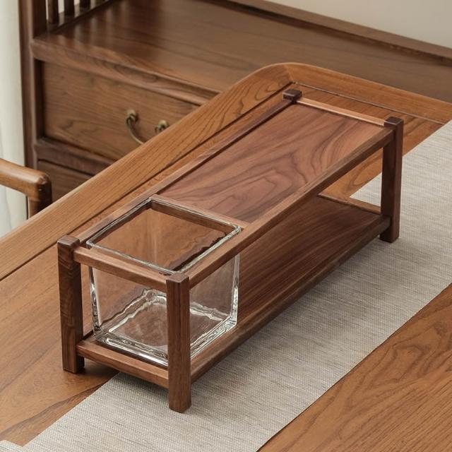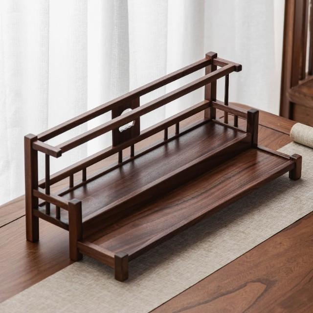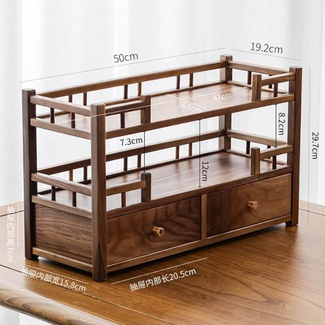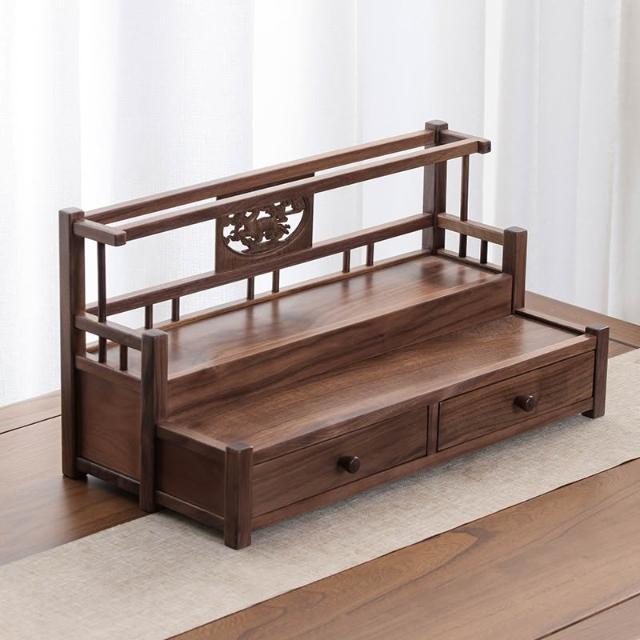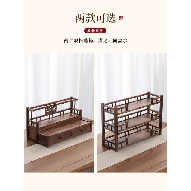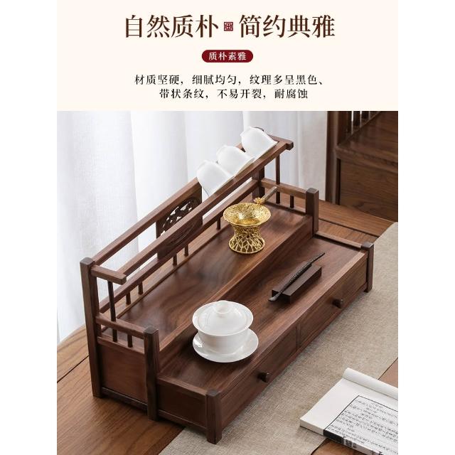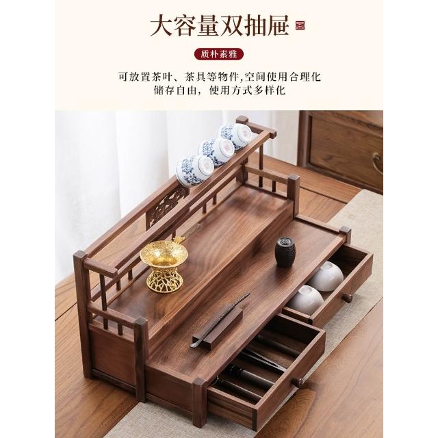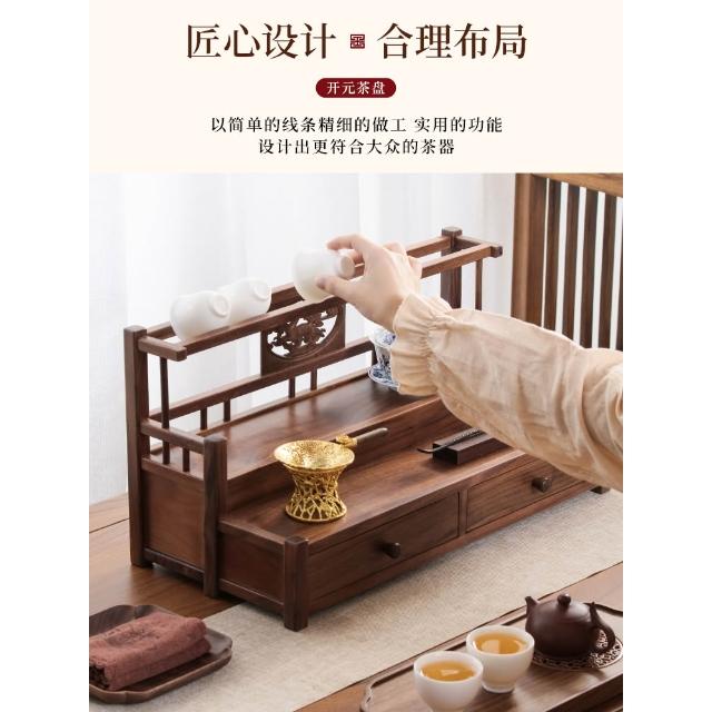 茶具收納架北美胡桃木雙層博古架中式實木茶壺紫砂茶杯瀝水置物架