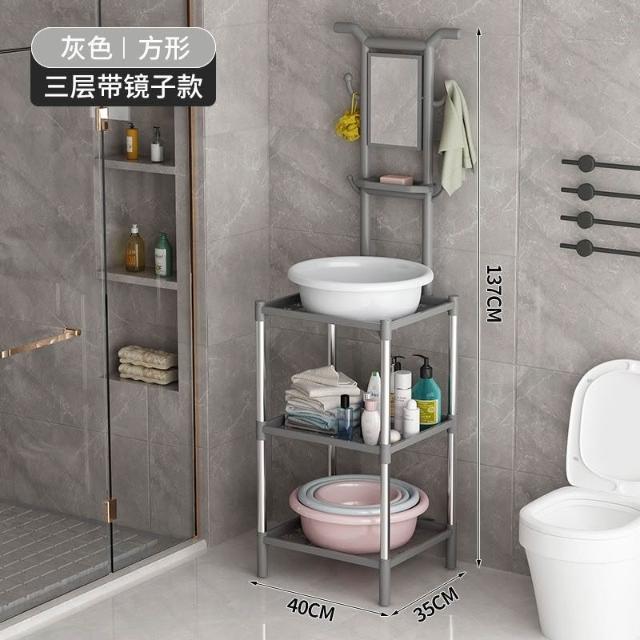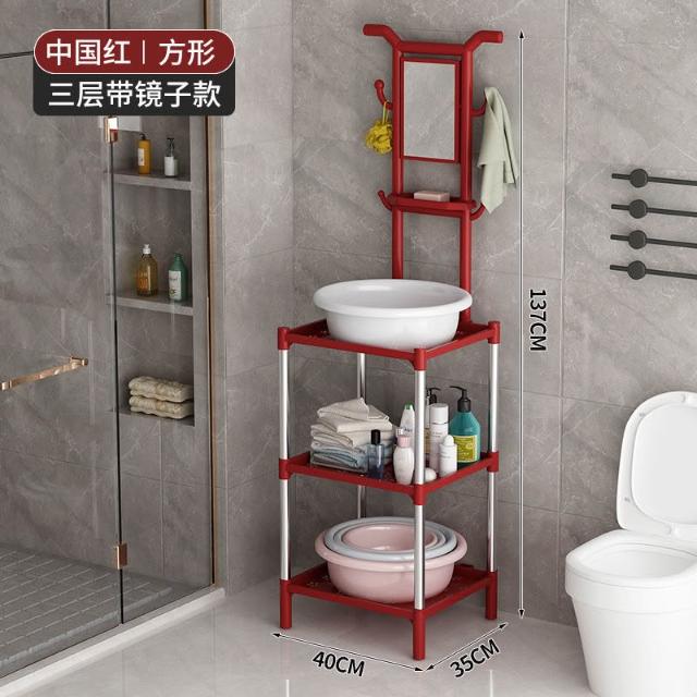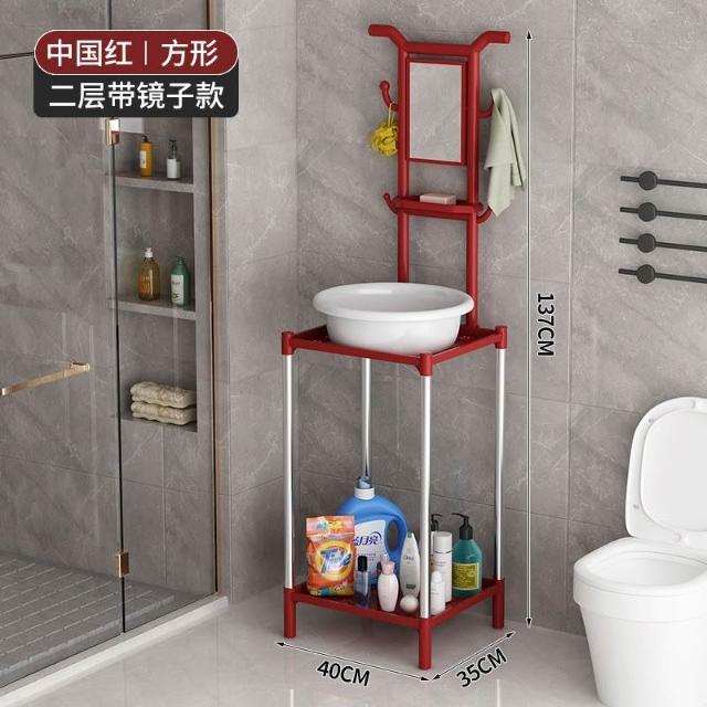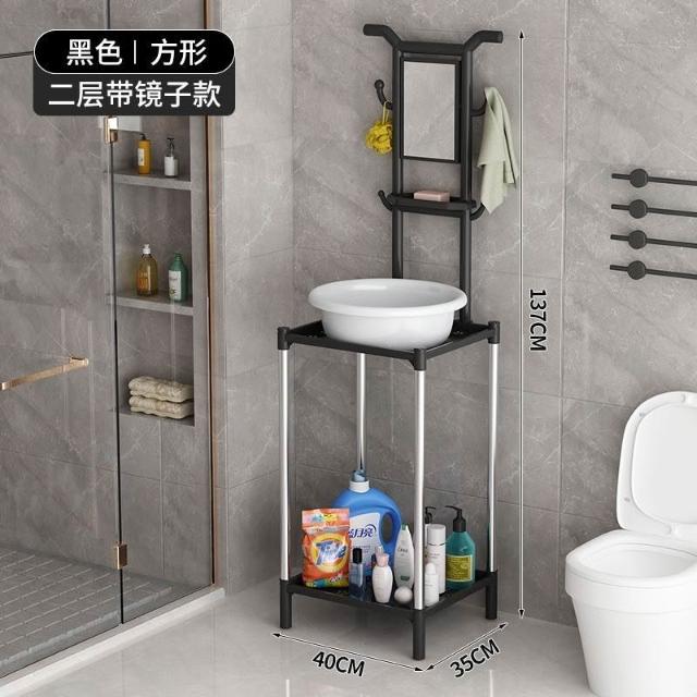 小柒家Mercure 農村老式臉盆架洗臉盆架子落地家用簡易浴室衛生間洗手面盆帶鏡子