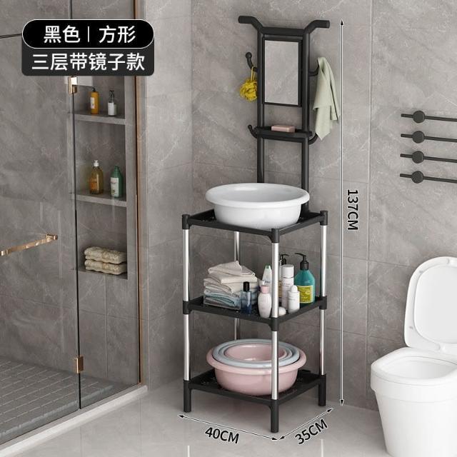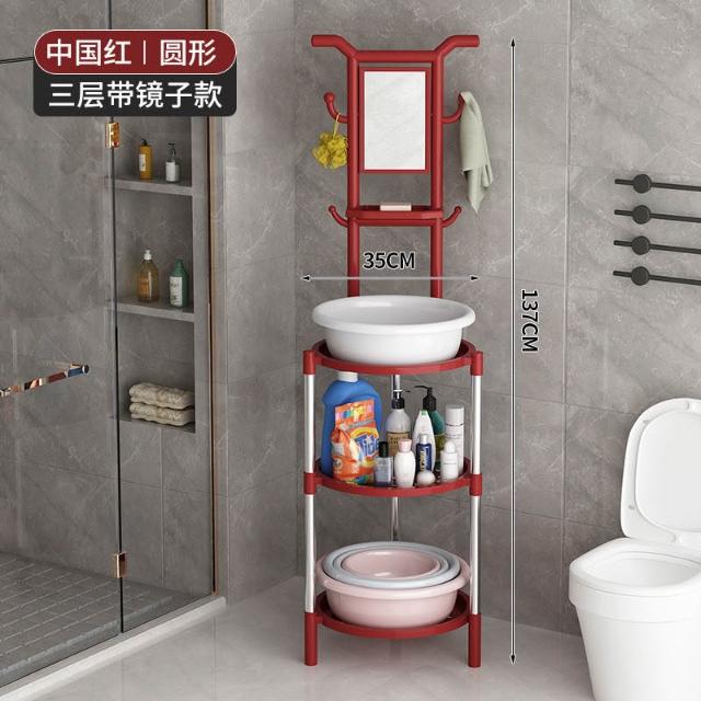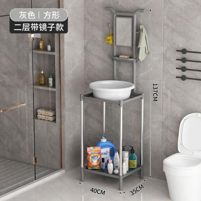 小柒家Mercure 農村老式臉盆架洗臉盆架子落地家用簡易浴室衛生間洗手面盆帶鏡子