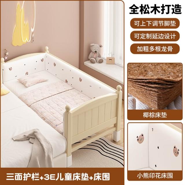 小柒家Mercure 兒童床拼接床可調節高度拼接大床定制加寬床實木嬰兒床帶護欄小床