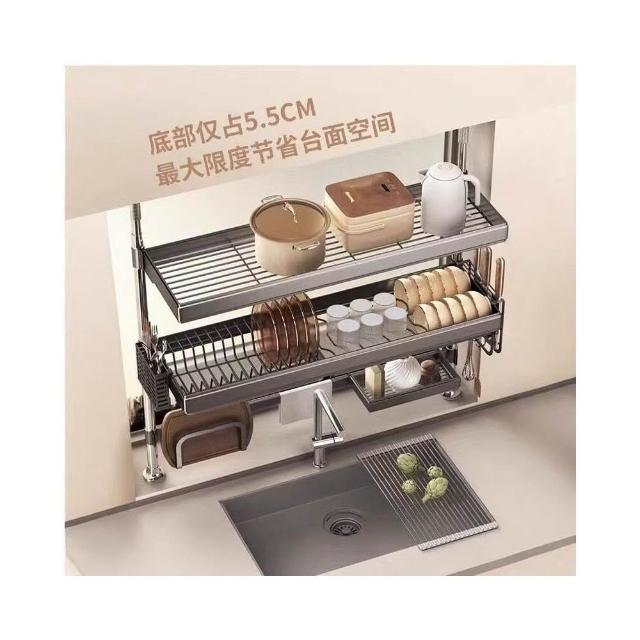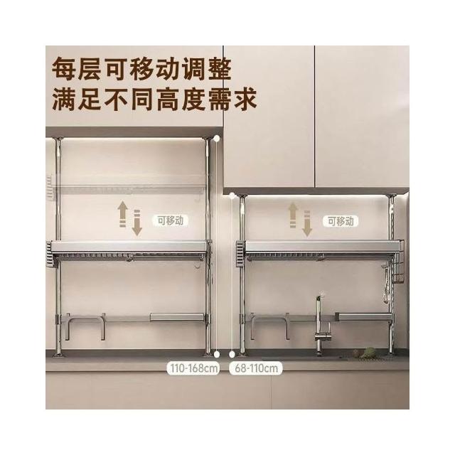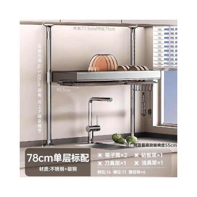小柒家Mercure 碳鋼頂天立地廚房置物架水槽架瀝水架洗碗槽水池洗菜盆上方放碗碟
