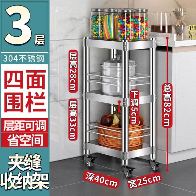 免運 🚛 窄邊櫃 置物架 304不銹鋼夾縫置物架廚房冰箱角落縫隙架20/25cm寬超窄小尺寸 VHIN