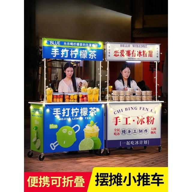 小柒家Mercure 夜市冰粉擺攤小推車折疊桌子檸檬茶手推便攜專用小吃地攤位展示架