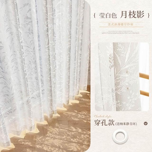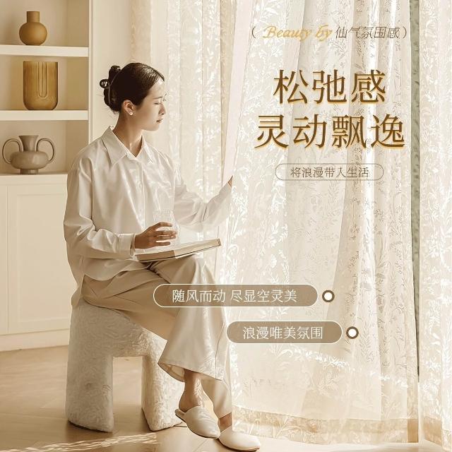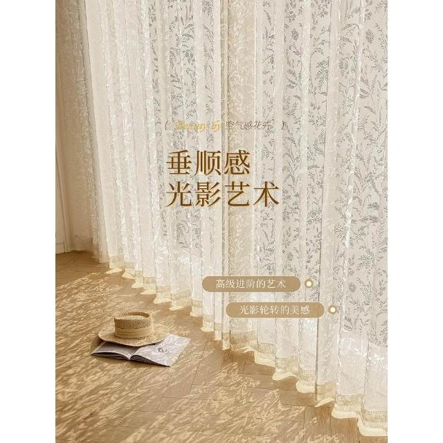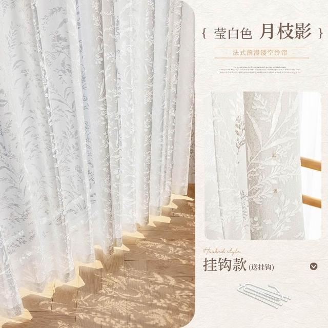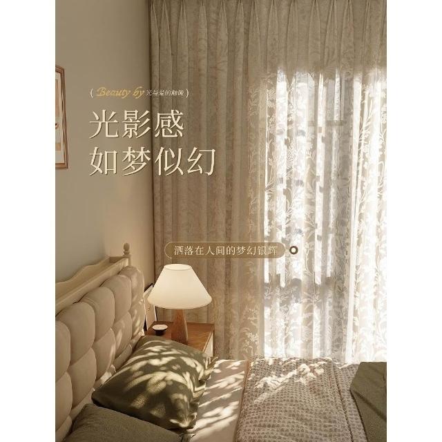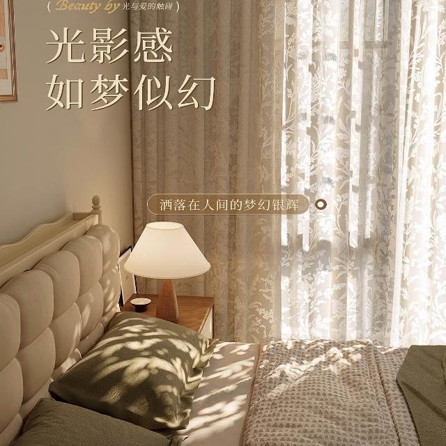 小柒家Mercure 月枝影白紗簾法式小窗簾遮光新款臥室高級感透光不透人客廳布