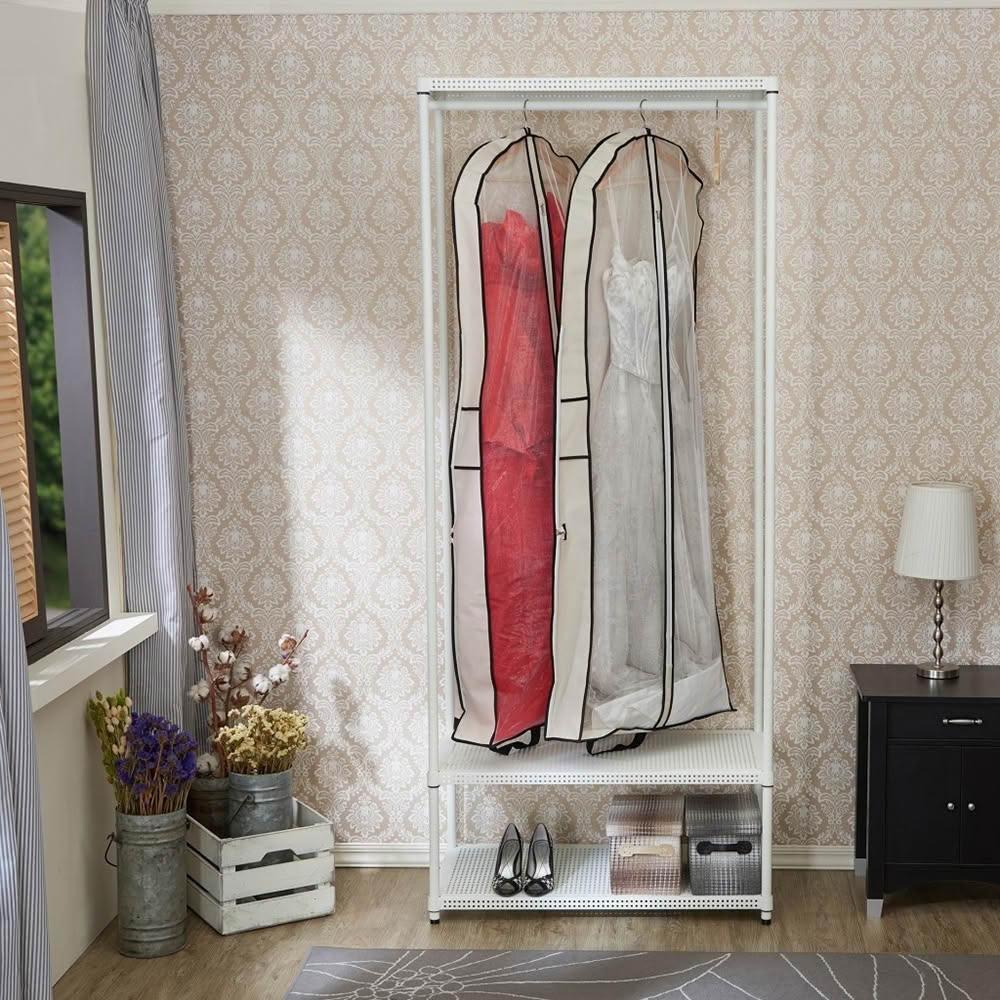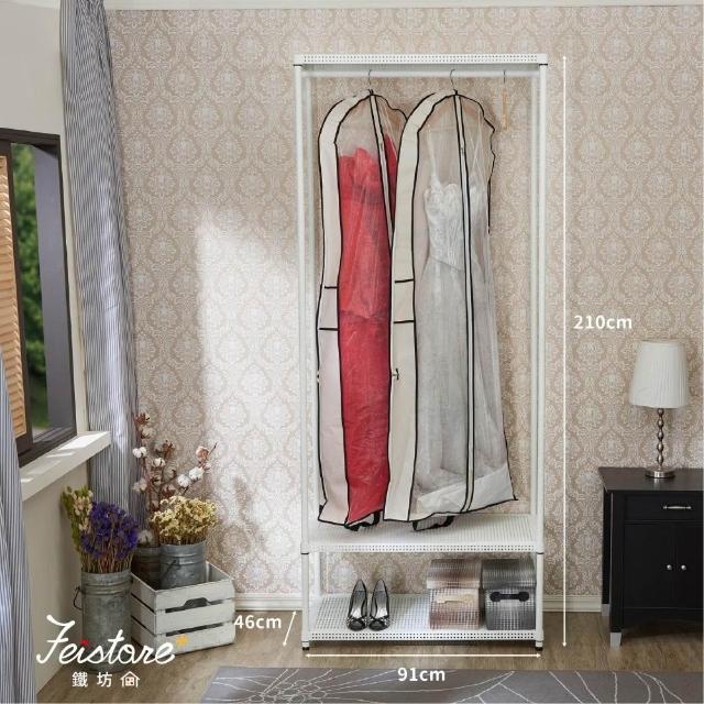 feistore 鐵坊家具禮服挑高吊衣架 46深*91寬*210高-三層白色+吊衣桿一支(含透明防塵套)/收納櫃 置物櫃 洞洞板 收納