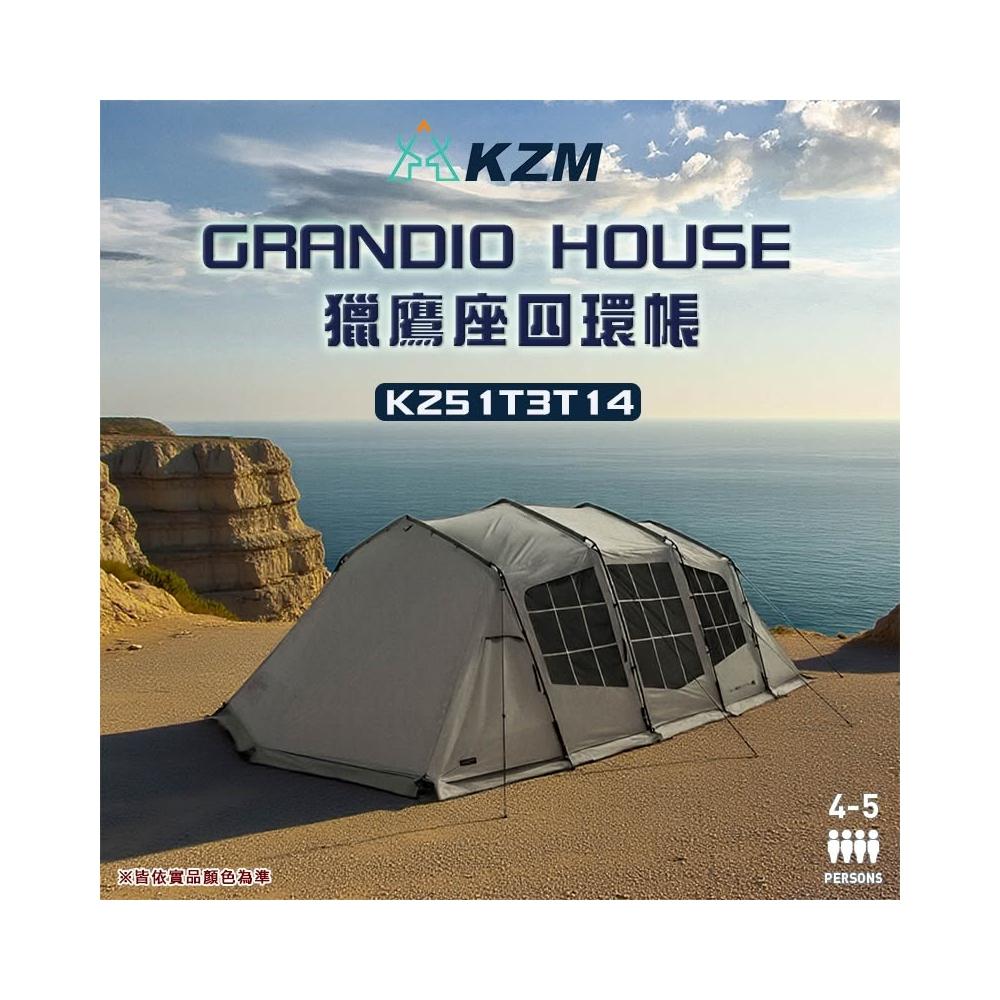 KZM【大山野營】K251T3T14 GRANDIO 獵鷹座四環帳 4-5人帳 隧道帳篷 客廳帳 露營