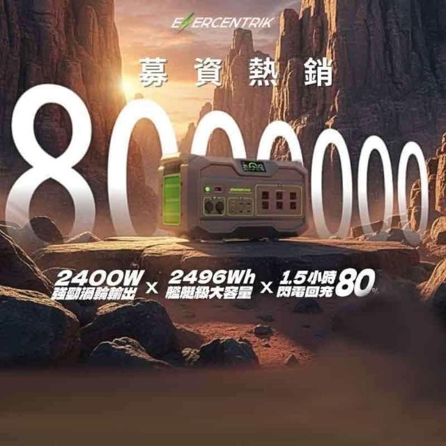 大山野營預購 ENERCENTRIK 能源方舟 2400W +太陽能板100W 2.4度電 行動電源 行動電池
