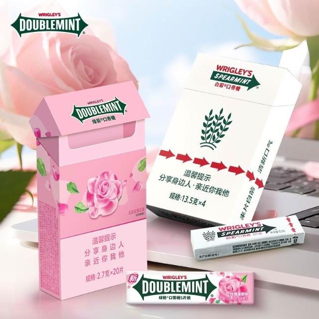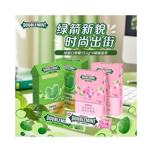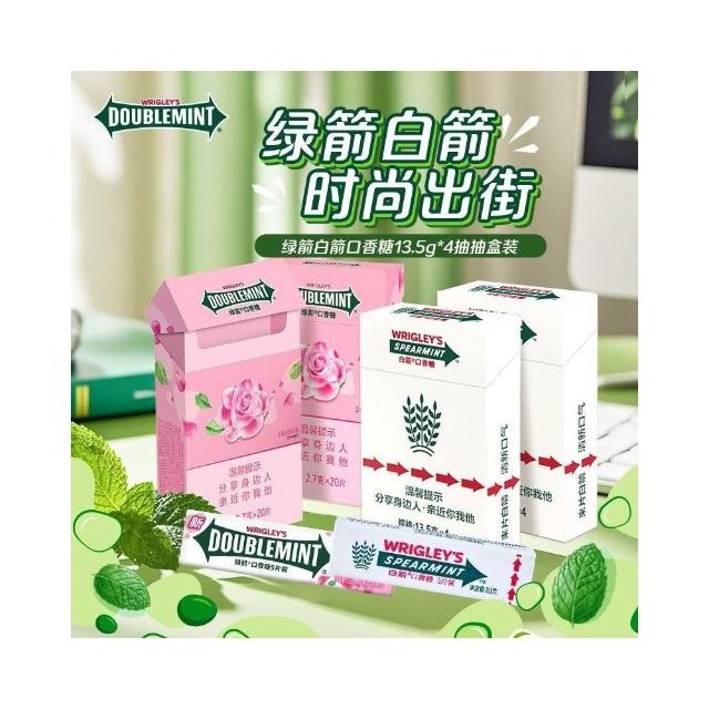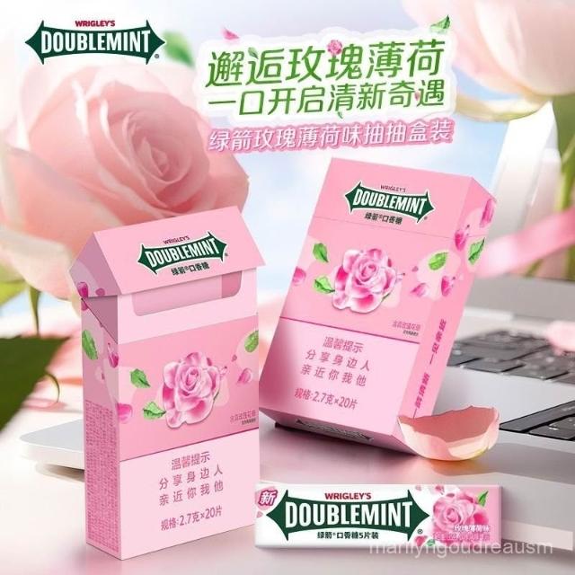 文文甄選 綠箭玫瑰白箭薄荷煙盒抽抽盒40片起車載口香糖薄荷踏春零食