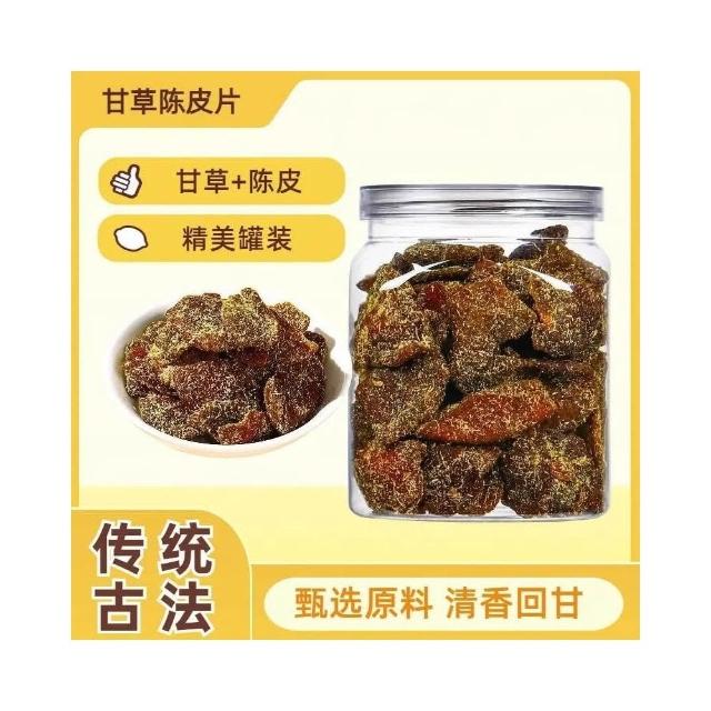 文文甄選 正宗廣東甘草陳皮400g/罐卽食老陳皮潮汕特産痠甜果脯休閒零食
