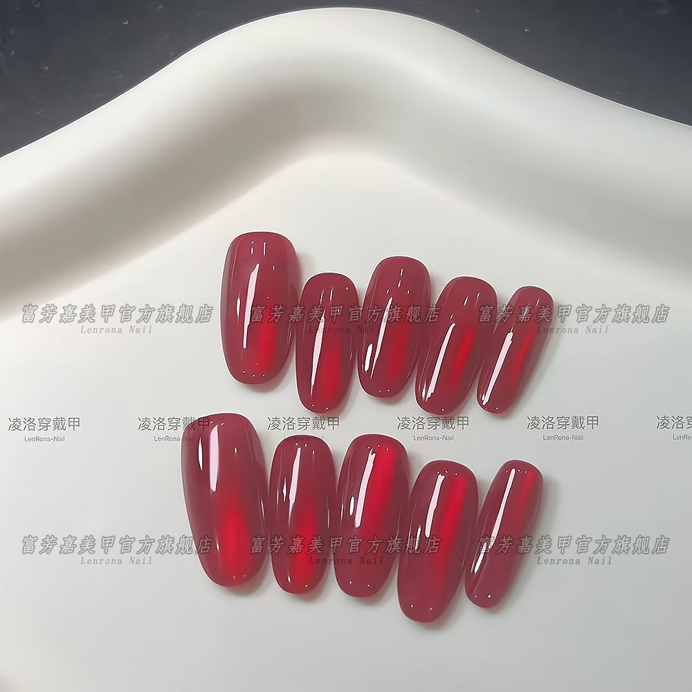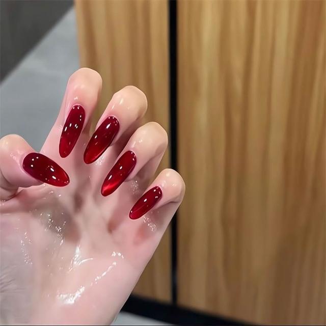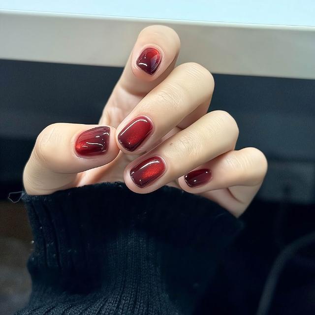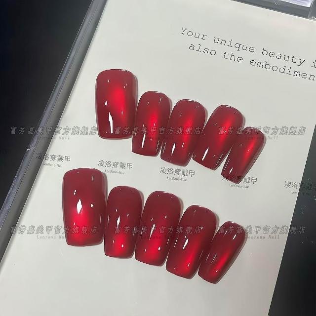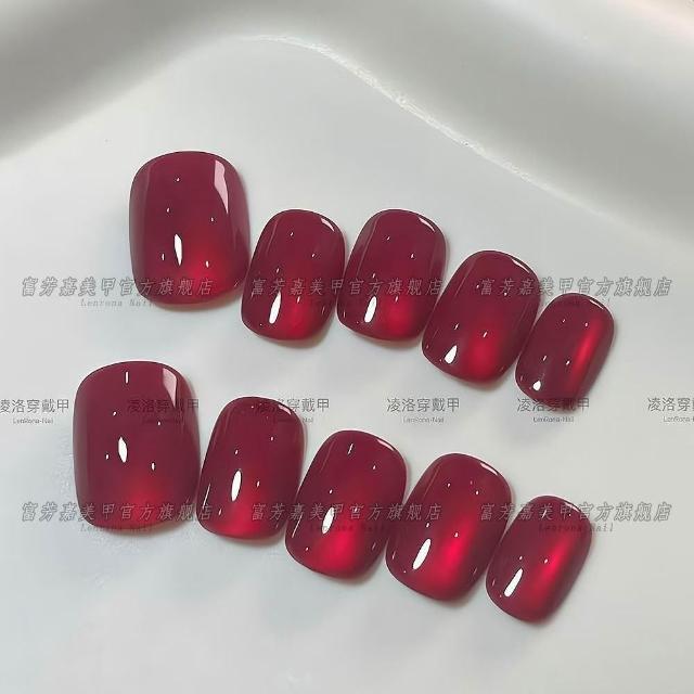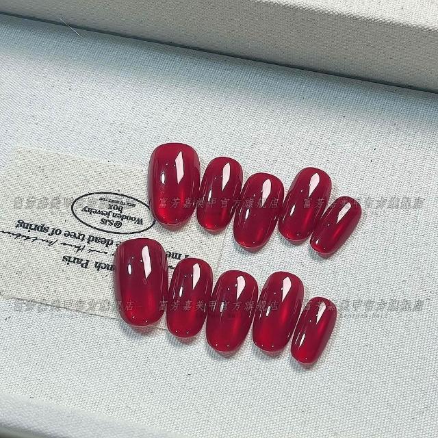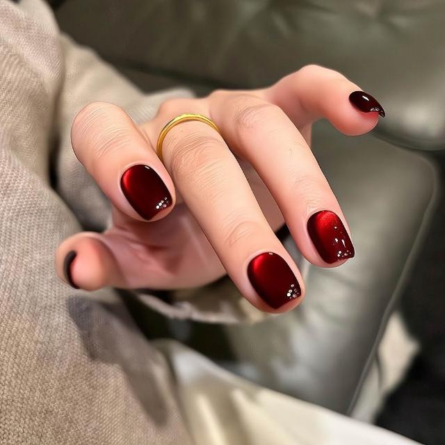 紅色玻璃珠高級感明媚顯白酒紅新年限定美甲穿戴