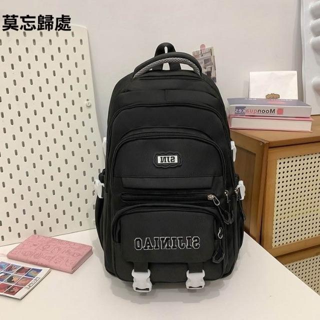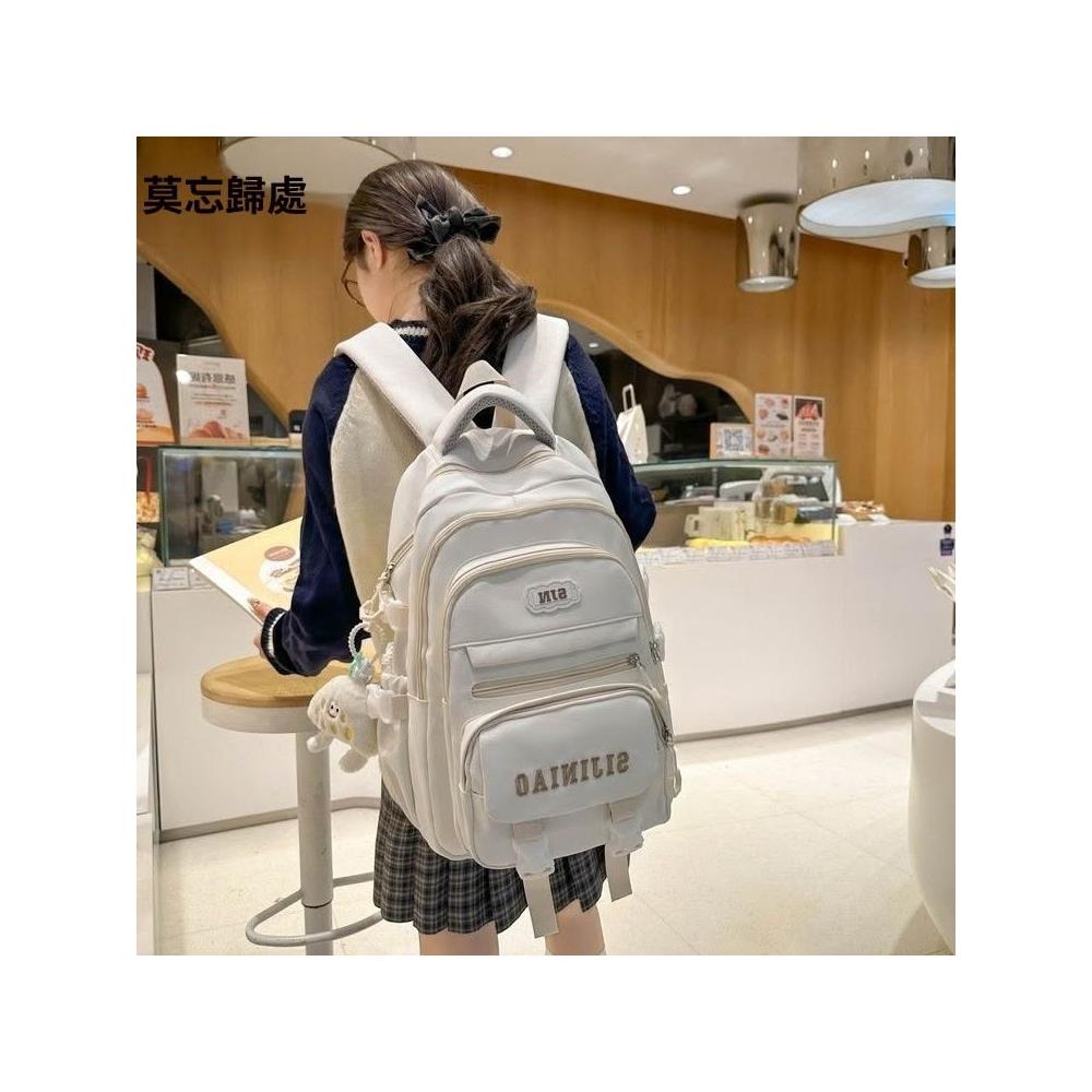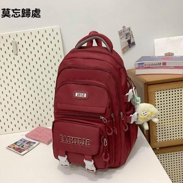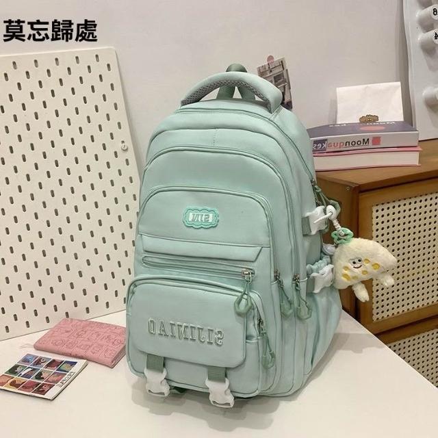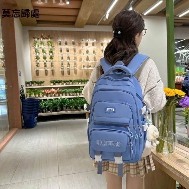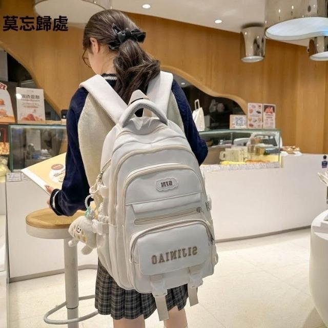 新款純色大容量雙肩包日系ins學院風國中學生百搭多隔層減負揹包