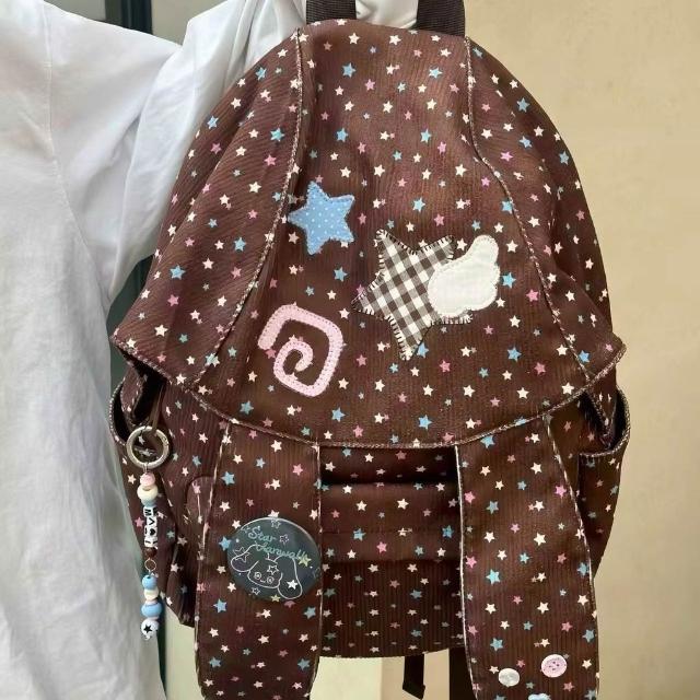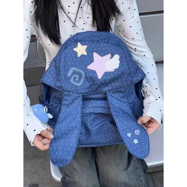 2026韓國新款波點兔子耳朵雙肩包女生春夏出遊書包繡線輕便揹包